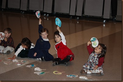 Our local Catholic homeschool group had a small Christmas group performance tonight at our parish.  I co-teach the preschool group with my friend Blair.  The preschoolers did a rendition of The Friendly Beasts where they held up pictures of the various animals to go along with the song.  We made the animals in class this past Friday.  Grace and Jake also participated in a Nutcracker excerpt.  All in all, it was a success.  All the kids really seemed to have a good time.  I’m just sad Daddy couldn’t be there.  We missed you, dear!